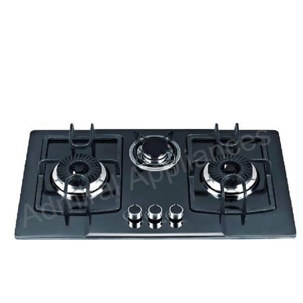 Dimensions : 29.50" x 17"3 Burners Gas Inlay Hob (Black Stainless Steel)